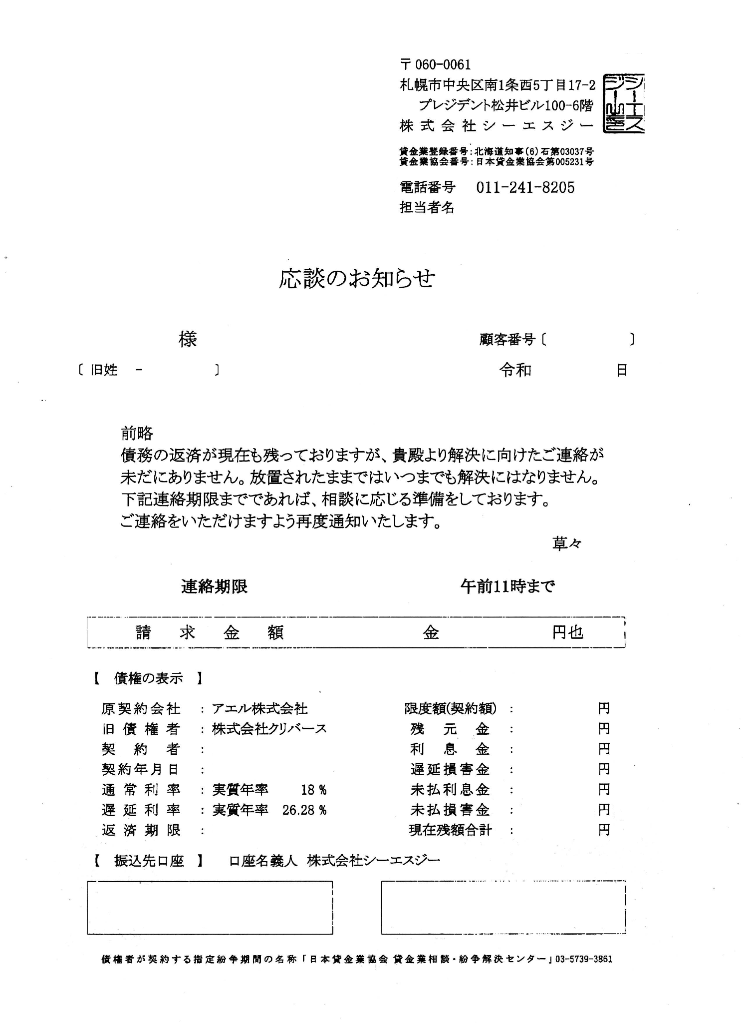 そのため、シーエスジーから借りていなくても債権が転々と譲渡されて、最終的にシーエスジーから電話や手紙が届くことがあります。